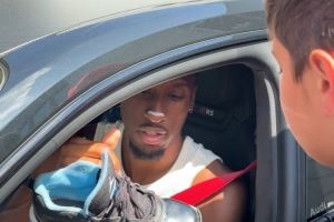 科曼今天驾车离开塞贝纳大街,为球迷签名,并下车与球迷合影,科曼说道:“我很快就会说些什么。”